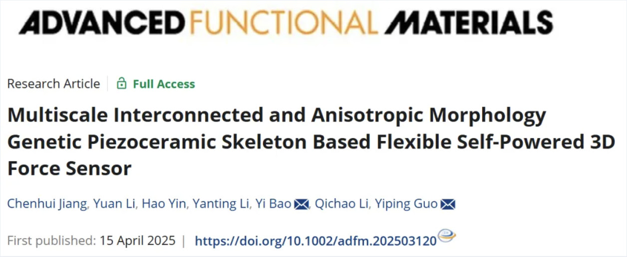 近日,海角网 金属基复合材料全国重点实验室郭益平课题组在面向多向力感知的柔性压电传感器研究中取得重要进展,研究成果以“Multiscale Interconnected and Anisotropic Morphology Genetic Piezoceramic Skeleton Based Flexible Self-Powered 3D Force Sensor”为题发表在Advanced Functional Materials上。(DOI: //doi.org/10.1002/adfm.202503120)